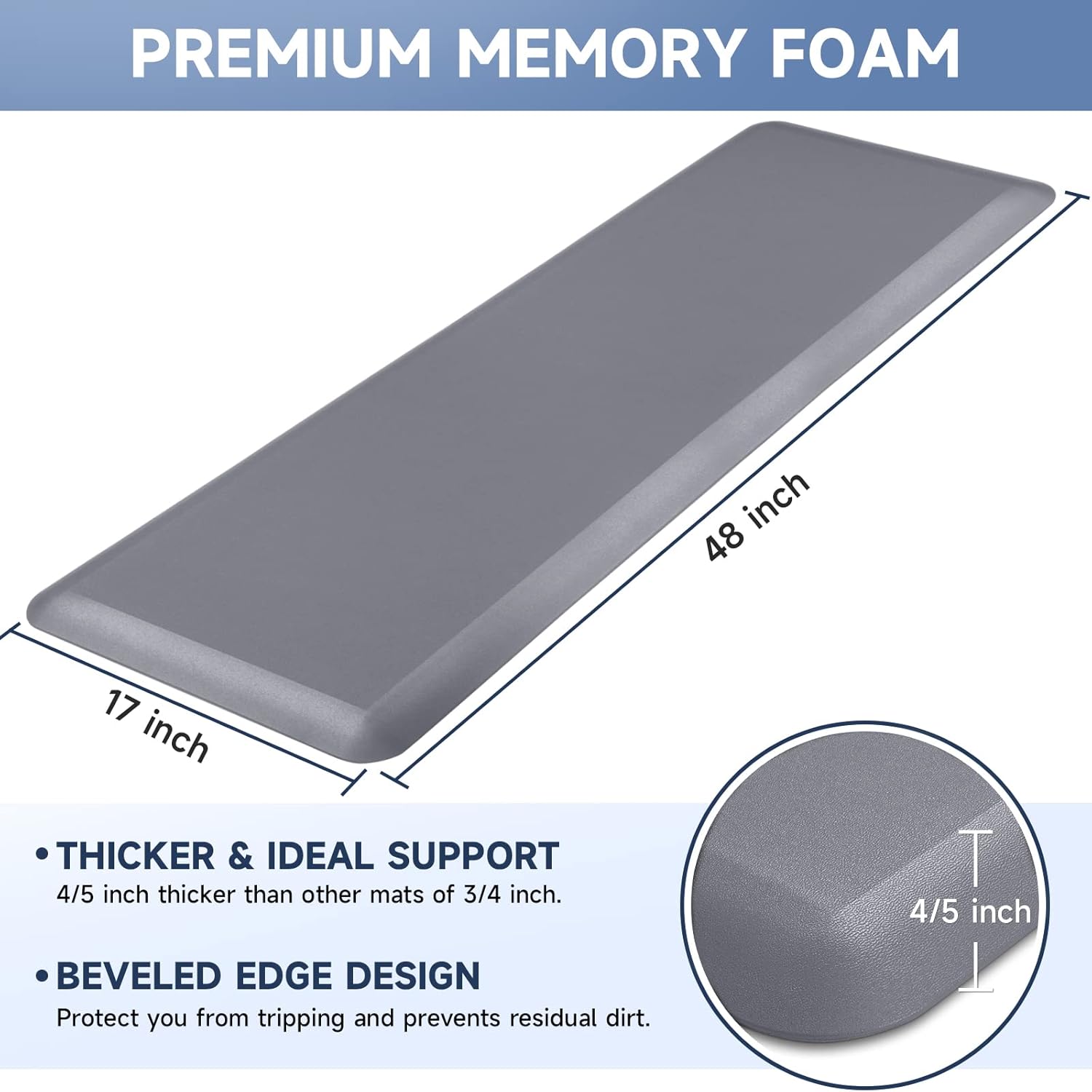• 【Thicker Mat】The StepRite kitchen mat is made of 4/5 inch thick memory foam for better support and comfort when standing. Measured as 17*28 inches. Suitable for kitchen, office, laundry room or any high-traffic area