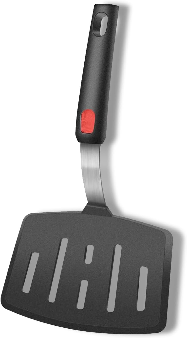 • 🥕Perfect spatula for your non-stick cookweare, perfect for flipping pancakes, fish, omelette and more. the pancakes spatula is the perfect complement to your expensive non-stick and coated cookware as it will not scratch it.This spatula glade is gray-black and handle is black. It look more High-end and expensive and more fashion.