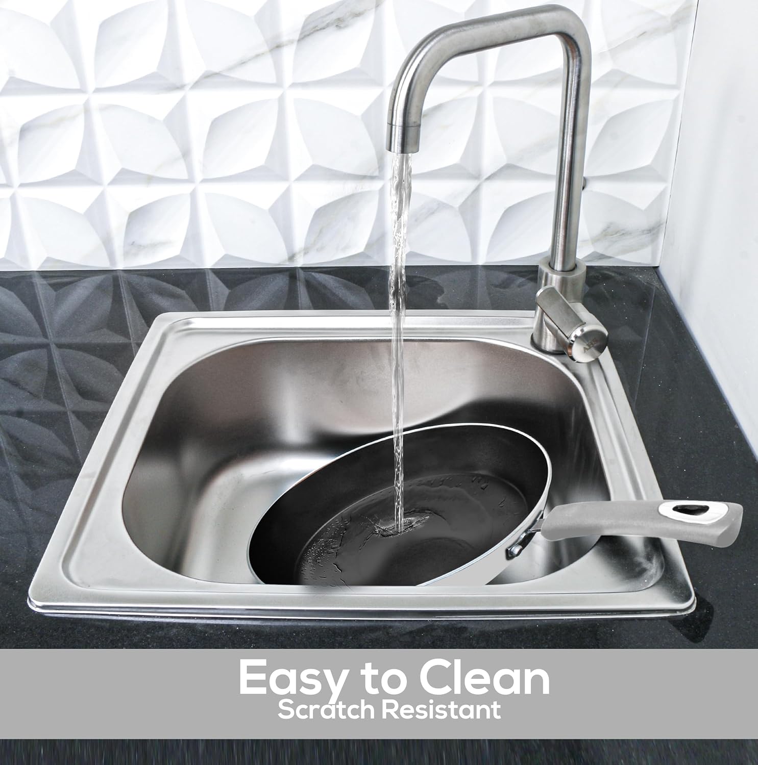 • EASY CARE - Let the hot cookware cool down before washing. Avoid the usage of harsh detergents or abrasive materials to wash. Always dry the cookware after use, it is recommended to use soft cotton or linen for drying. The cookware is dishwasher safe however, it is recommended to hand wash.