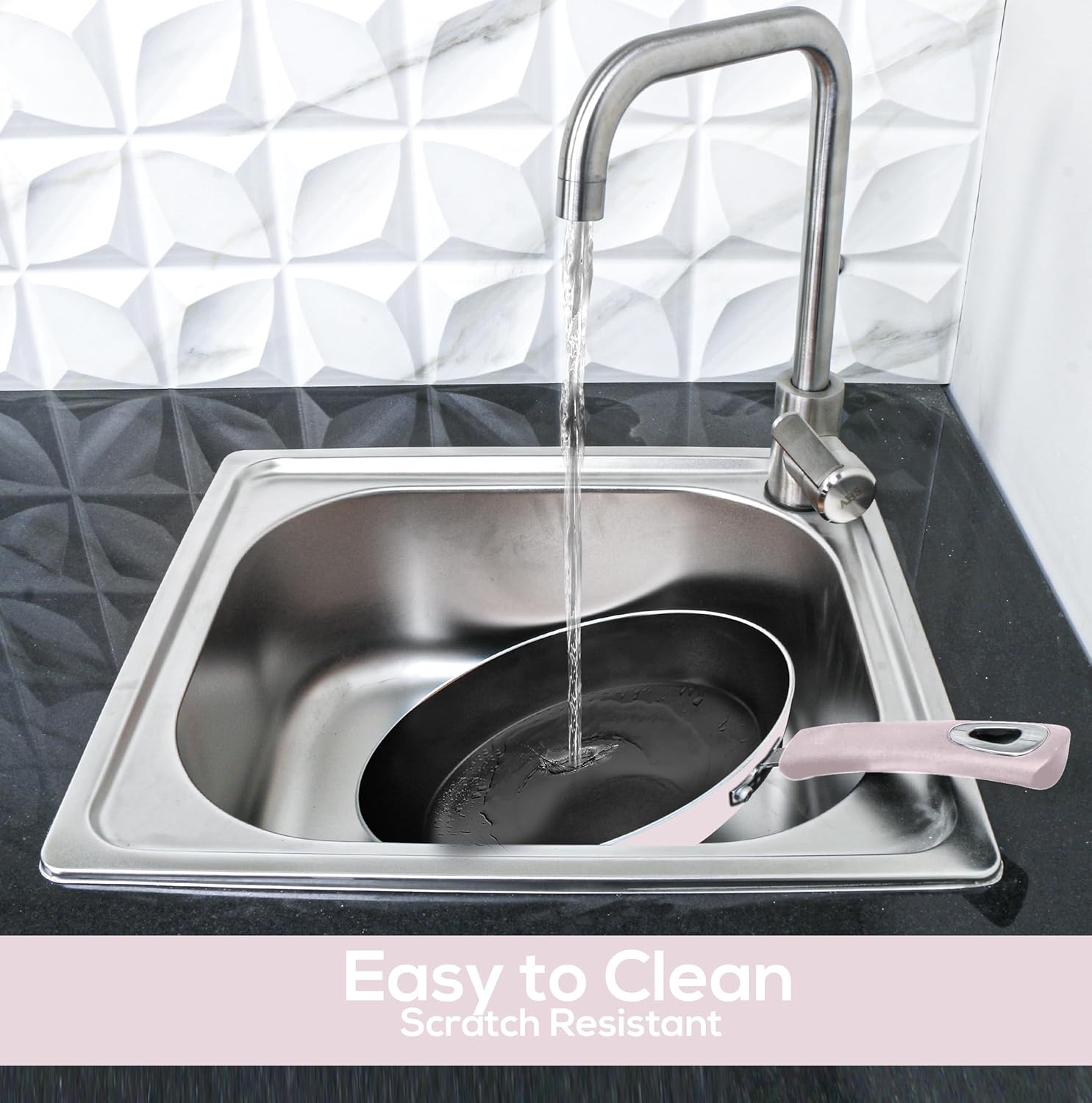 • EASY CARE - Let the hot cookware cool down before washing. Avoid the usage of harsh detergents or abrasive materials to wash. Always dry the cookware after use, it is recommended to use soft cotton or linen for drying. The cookware is dishwasher safe however, it is recommended to hand wash.
