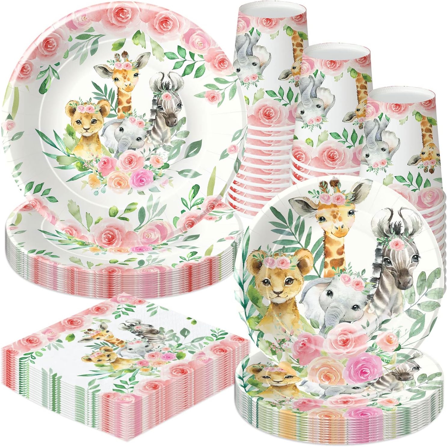 • 【Safari Birthday Decorations Girl】Safari birthday party supplies tableware set is designed with greenery leaves roses, and cute jungle animals such as a lion, elephant, giraffe, and zebra. Use this plate set to hold a jungle safari theme party, wild one birthday, two wild birthday, 3rd birthday, or Baby Shower, your guest and girls will love it