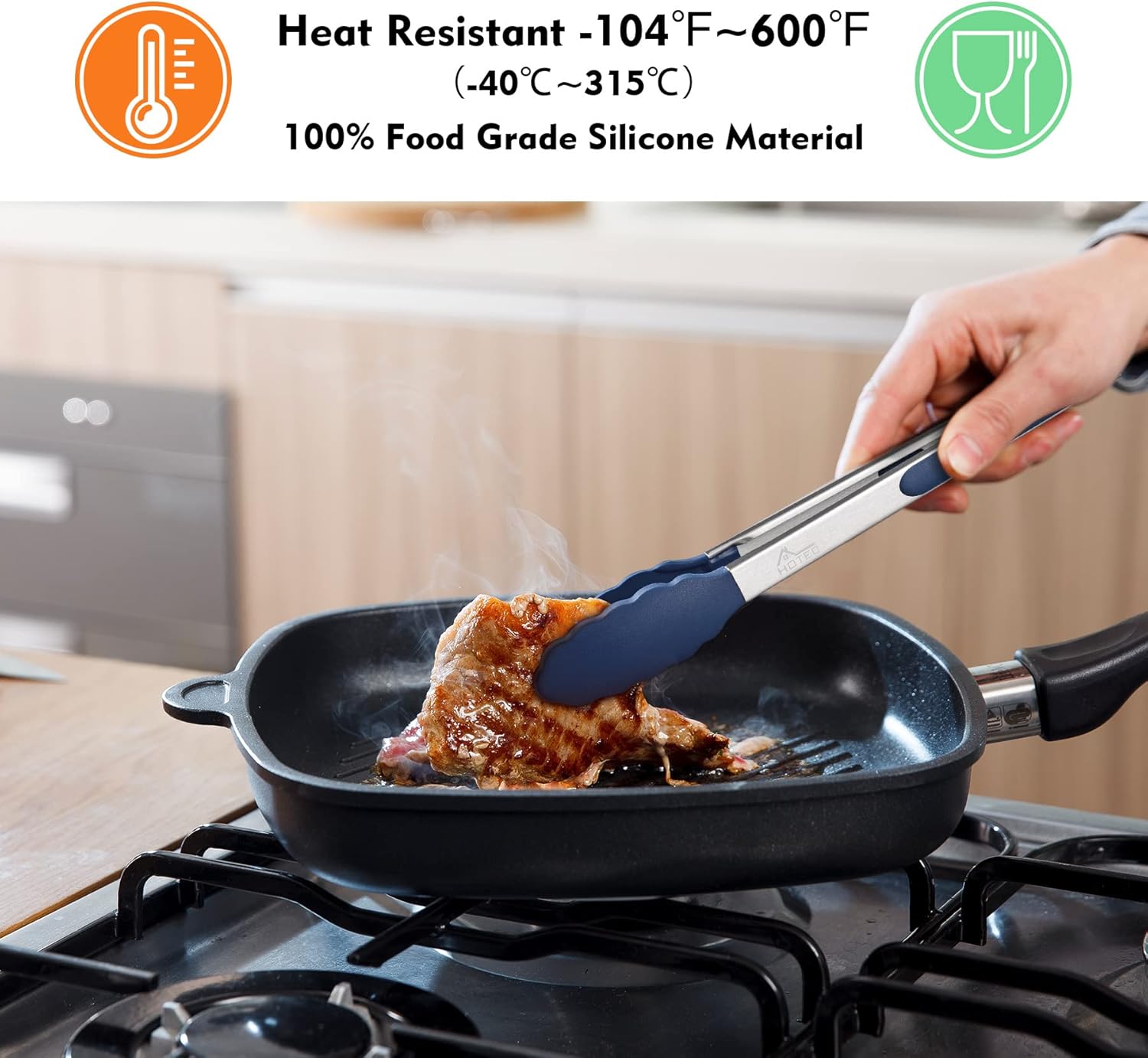 • TOP QUALITY: Hotec kitchen tongs are constructed with high quality stainless steel, sturdy, heat resistance, anti-rust, anti-corrosion, light weight, easy to handle, like new forever. This tongs for cooking comes with 2 sizes, 9 inch and 12 inch. Food safe, Carbonfree Certified.