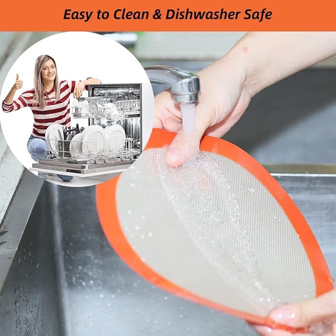 • 【SMOOTH SURFACE, TOUGH AND TENSILE INTERIOR】These non-stick silicone round baking mats 10 inch are easy to use whether you are highly skilled in baking or not. With smooth, shiny surface, you will find the cleanup an easy peasy. Just simply rinse off in warm soapy water and let it dry. If you want to maximize time saving, dishwasher is also a good alternative. On the other hand, with tough and tensile interior, they’re very durable which helps you save money imperceptibly day by day.
