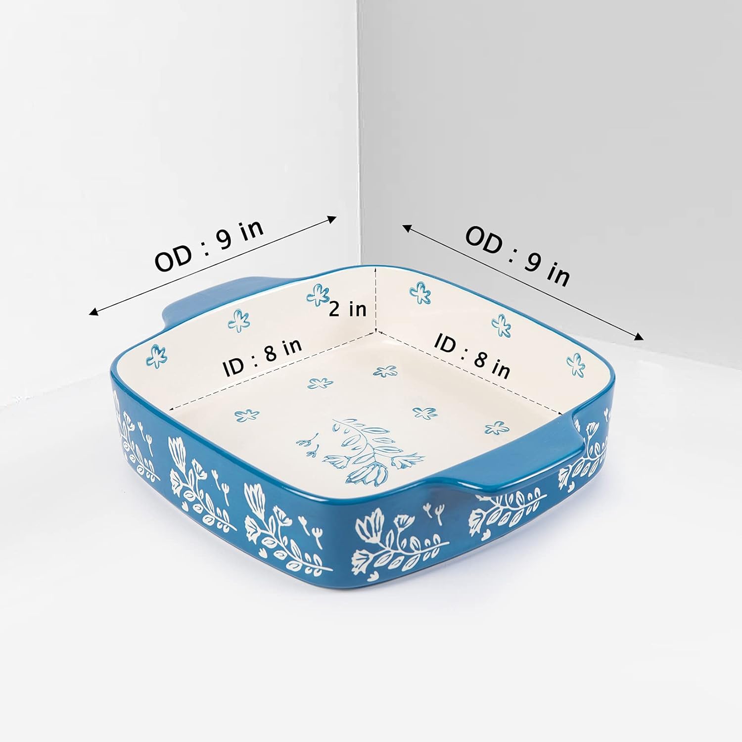 Wisenvoy 9x9 Baking Pan & Casserole Dish Set - 2-Piece Ceramic Square Bakeware