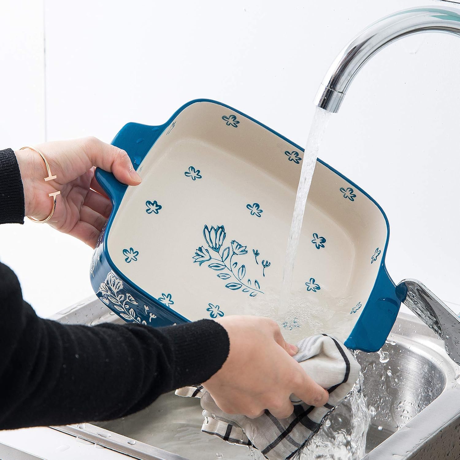 • 【CONVENIENT CLEANING】 Whether you want to clean the 9x9 Baking Pan by hand or with your dishwasher, it won't matter because the smooth porcelain texture makes cleanup a breeze. and It is suitable for microwave, freezer and oven.
