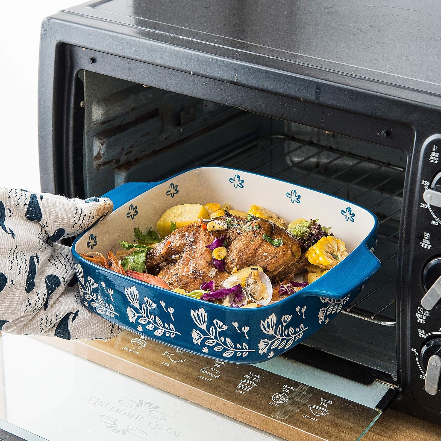 • 【SCIENTIFIC DESIGN】 The 9" X 9" size is more convenient for handling, storage and cooking. The double handles for more safety. Please use the Anti-hot gloves (excludes) to take the9x9 Baking Pan out when it is still hot.