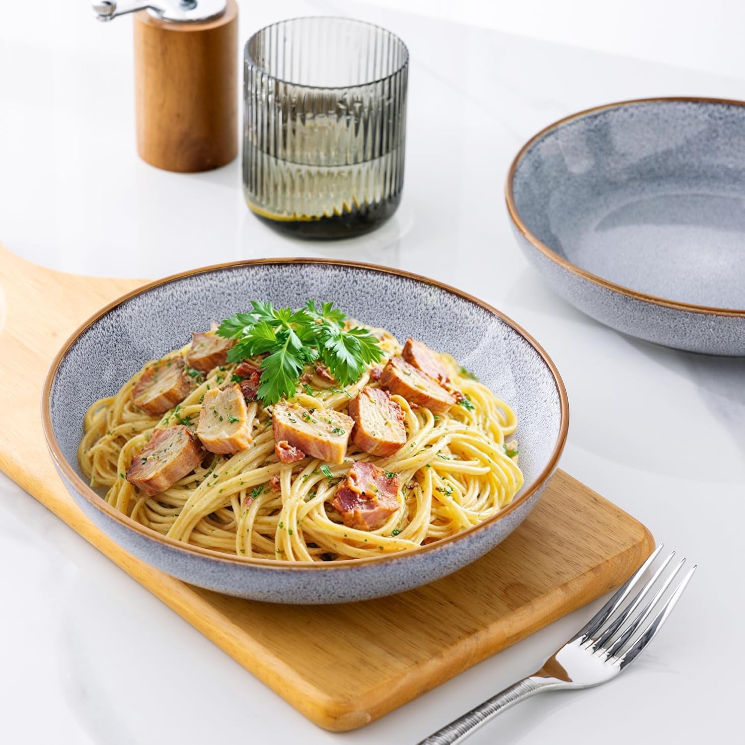 • HEALTHY & EXCELLENT VALUE : These Pasta bowls are made of degradable clay and fired at 2350℉ for 13 hours, making it free of lead and cadmium, NO need to worry about harmful substance leaching into your drinking and food, Twice fired premium ceramic make it sturdy, durable and chip-resistant for long use.