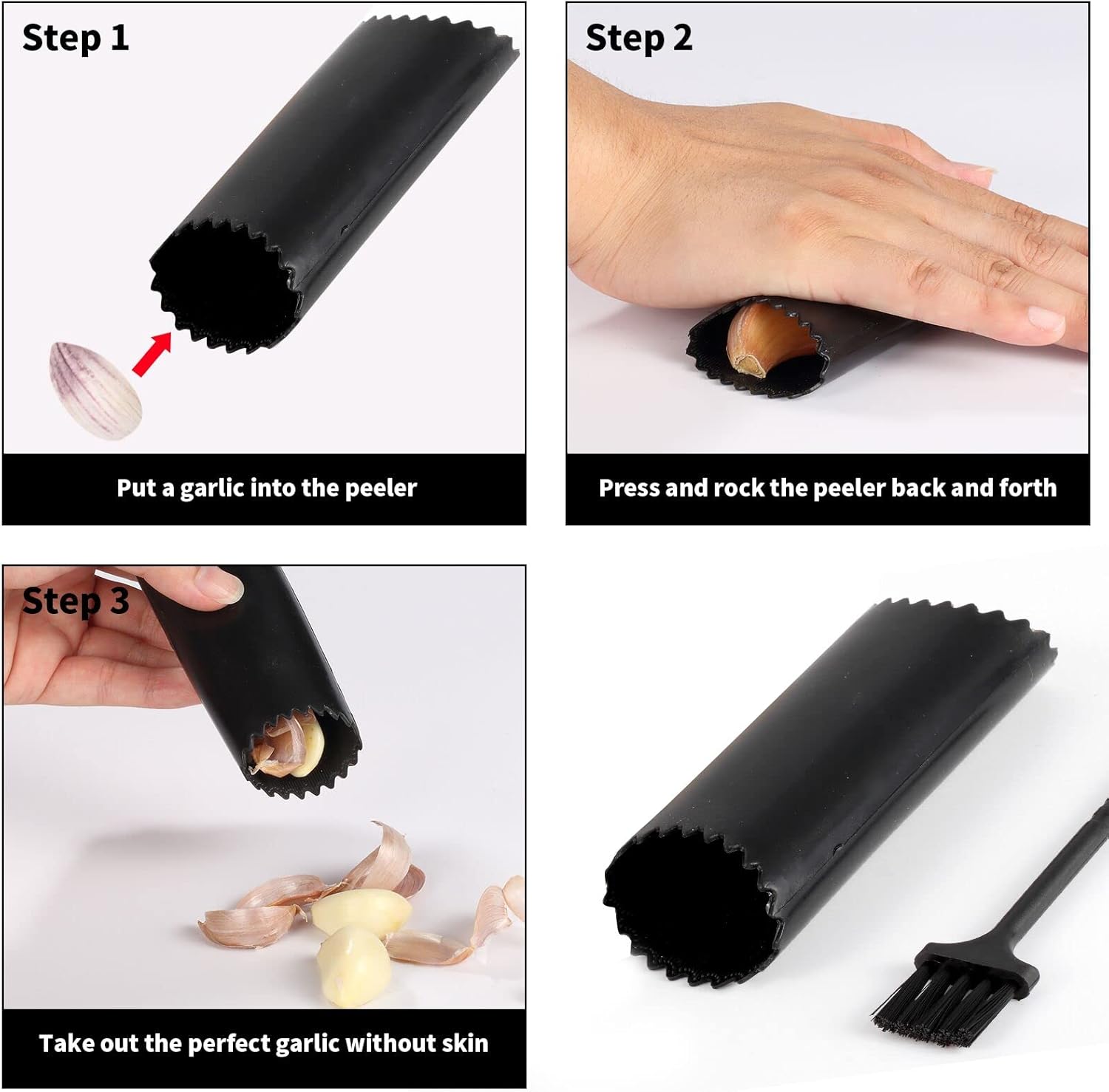 • COMPLETE SET: Each set has 2 Garlic Press Rockers, 2 Peelers, 2 Scrapers and 2 Brushes. Both garlic crushing and cleaning are efficient