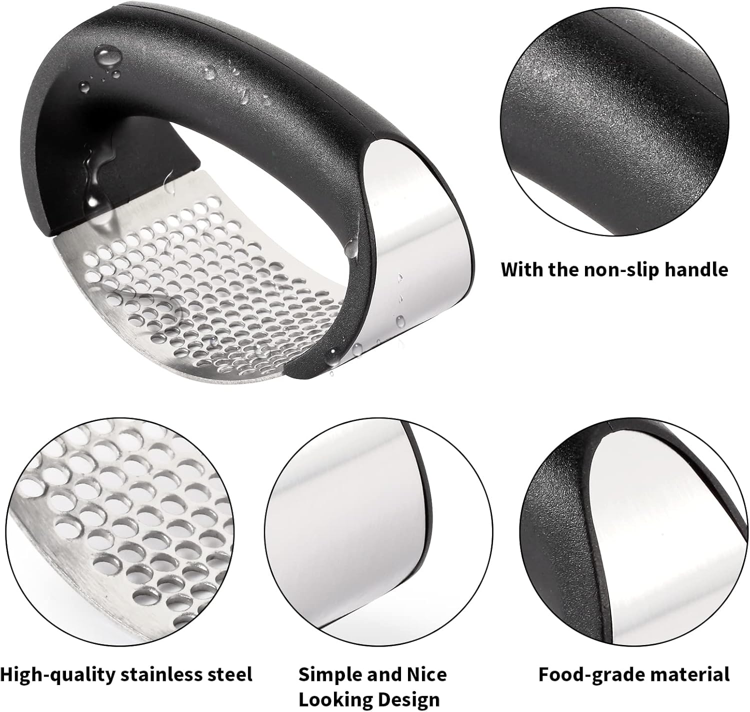 • FOOD-GRADE MATERIAL: Made of high-quality stainless steel, the garlic press rocker can directly press and crush garlics. With the non-slip handle, it is safe to use