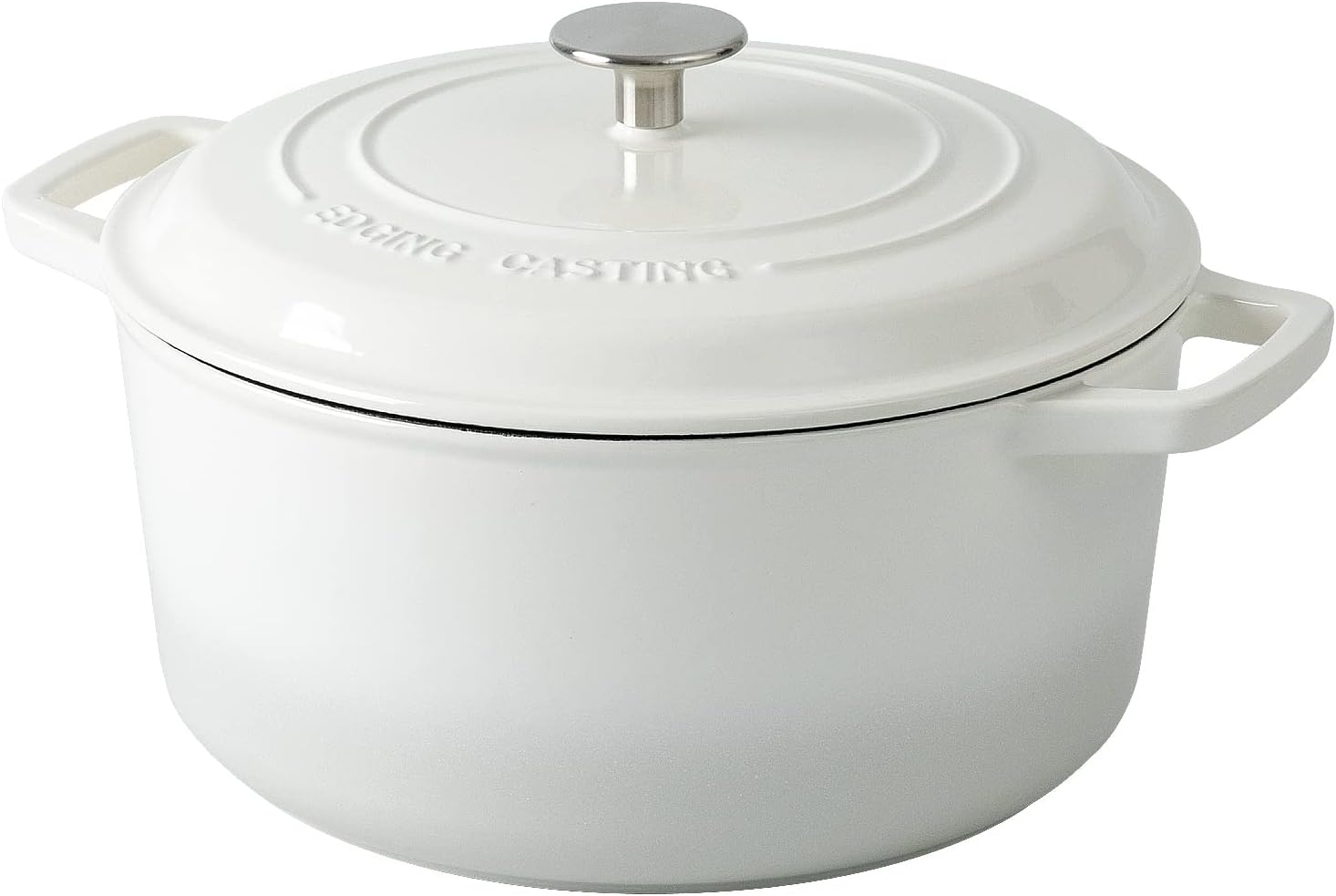 Enameled Cast Iron Dutch Oven Pot With Lid, Dutch Oven for Sourdough Bread Baking Round Pot Dule Handle, 7.5 Quart, White