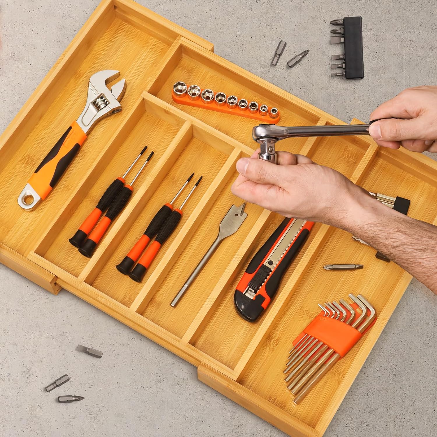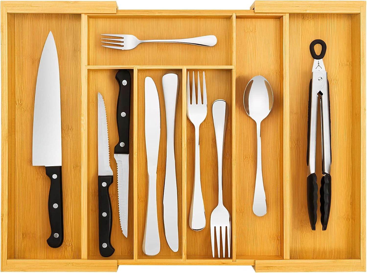 Silverware Drawer Organizer, Expandable Bamboo with Adjustable Utensil Cutlery Holder, Kitchen Flatware Organizer