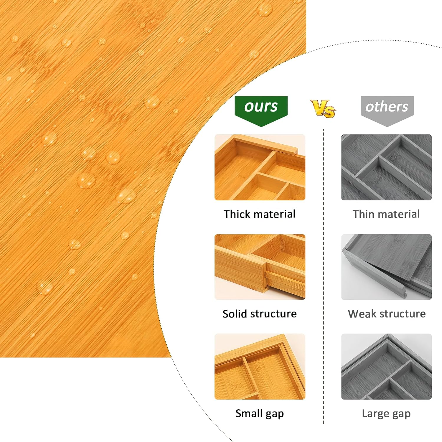 • 【Eco-Friendly Bamboo Composition】The silverware organizer is composed of bamboo since the surface of bamboo goods is smooth. Compared to plastic, it is easier to clean and more beneficial.