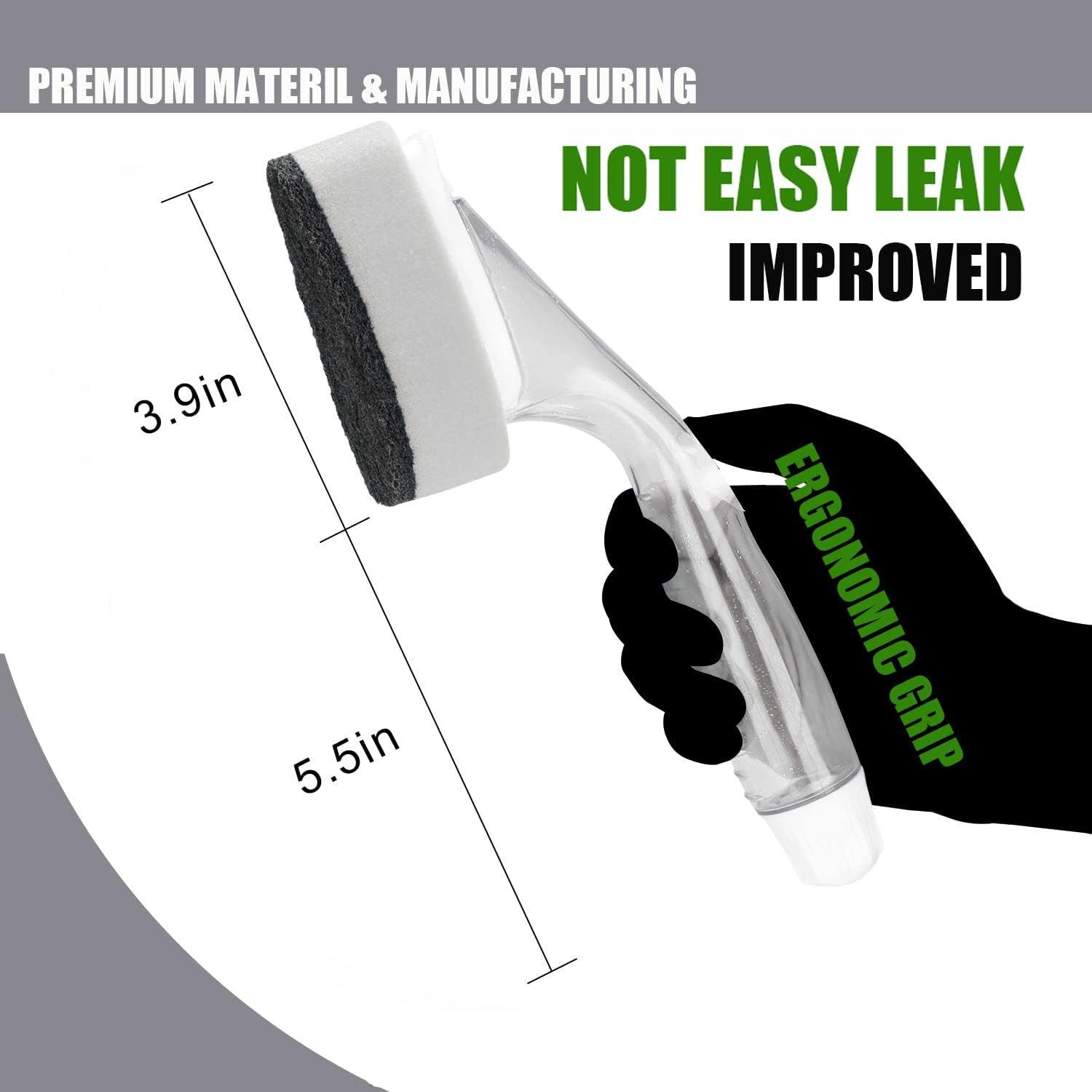 • WHAT WE IMPROVED: They made of much more durable and thickness scrubber material . Green dish scrubber ,yellow sponge and plastic component are stronger and tight closer than others , don’t worry easy to fall apart.We improved the system of soap dispenser,press the sponge suck out soap automatically, without headache of leaking.