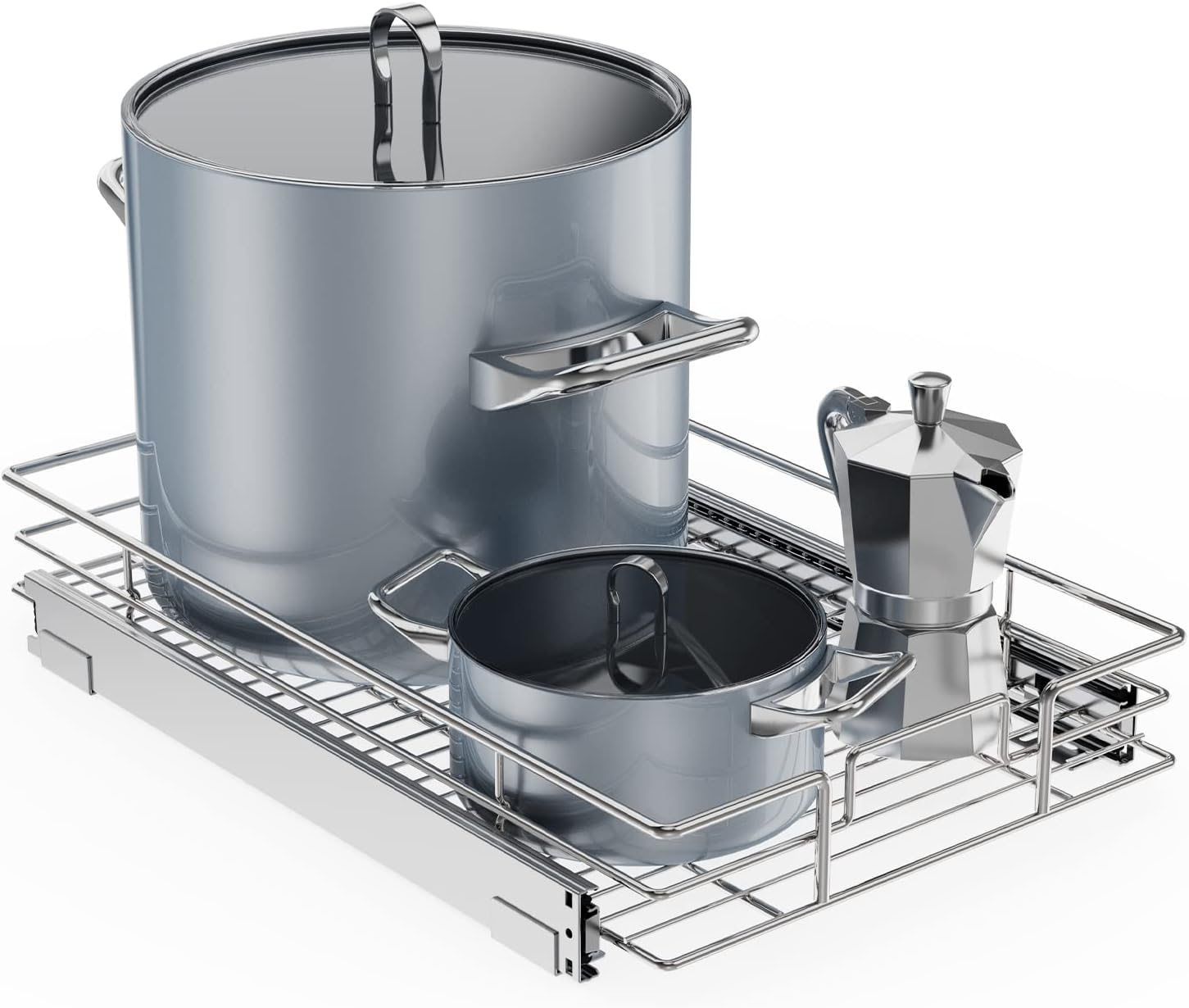 • 【Space-saving Pull Out Cabinet Organizer】This slide out cabinet organizer can maximize your cabinet space. Makes it super easy to store, organize, and access your stand mixers, pots, pans, baking sheets and other kitchen accessories, cleaning supplies, and various odds and ends. Now your cabinet is no longer just stacks of pots pans. You can contact seller via Amazon Messages to make sure if the size fit your cabinet.