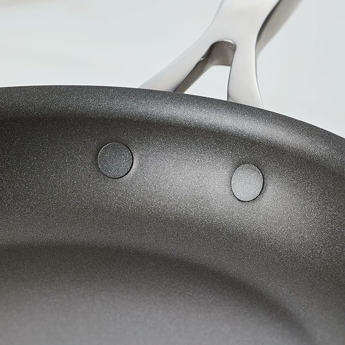 • PREMIUM DURABILITY: Hard anodized toughness with a thick, edge-to-edge stainless steel base for nonstick pots and pans that works on any stovetop, including induction. Plus the versatility to go oven safe up to 500°F (350°F with lids)