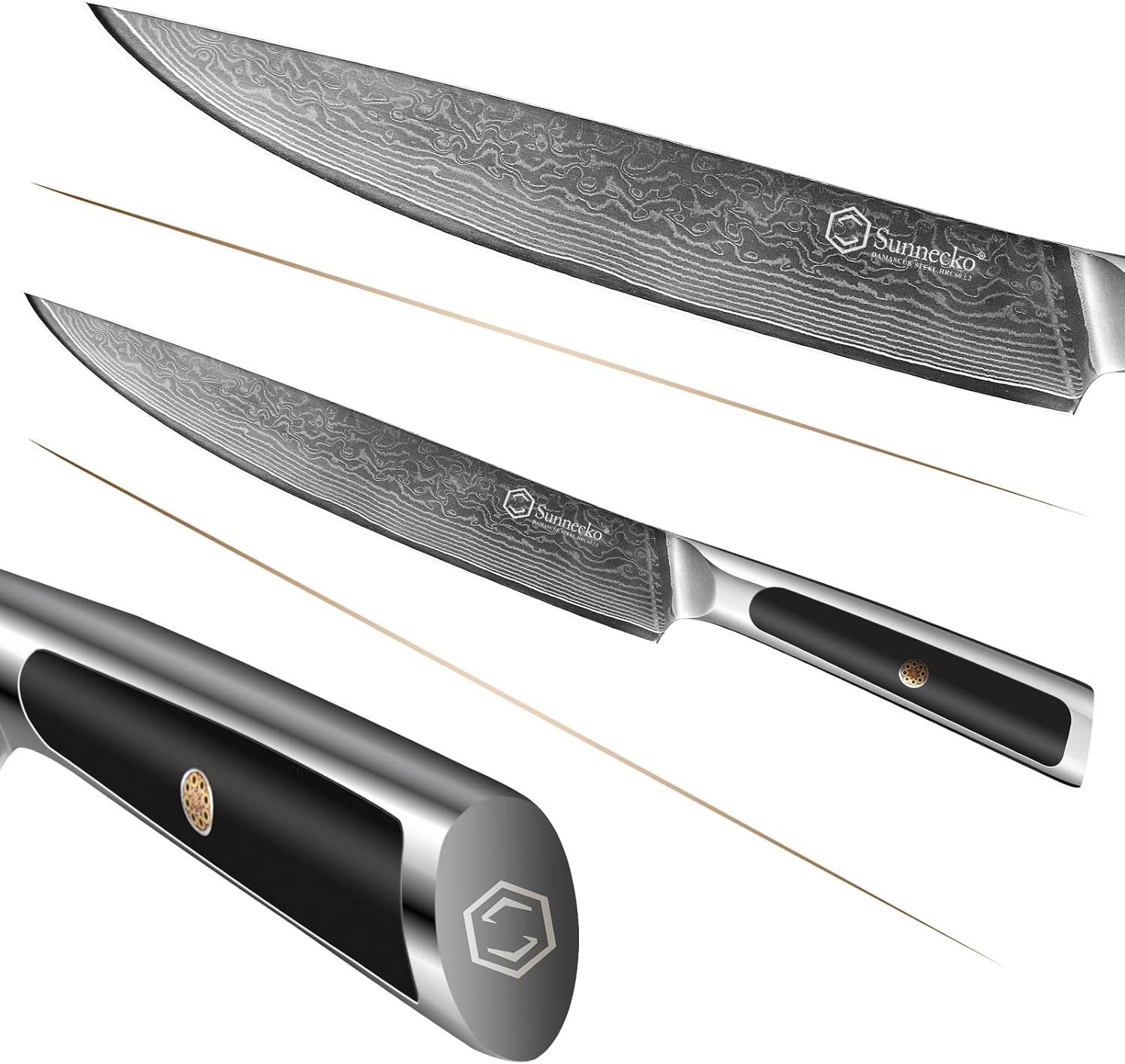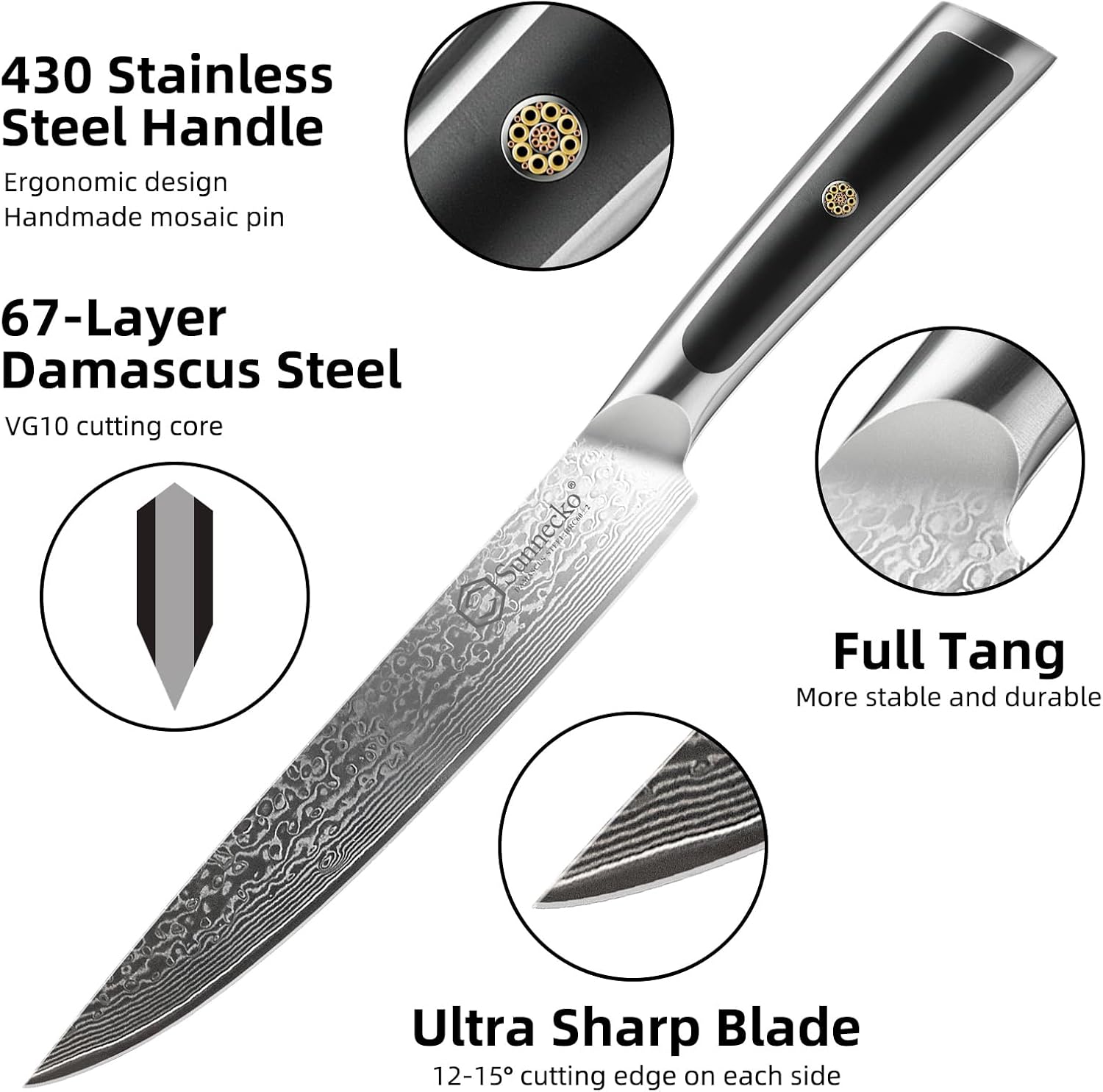 Sunnecko Damascus Kitchen Knife 8 Inch Carving Knife for Meat Slicing Knife Japanese VG10 Steel,Full Tang