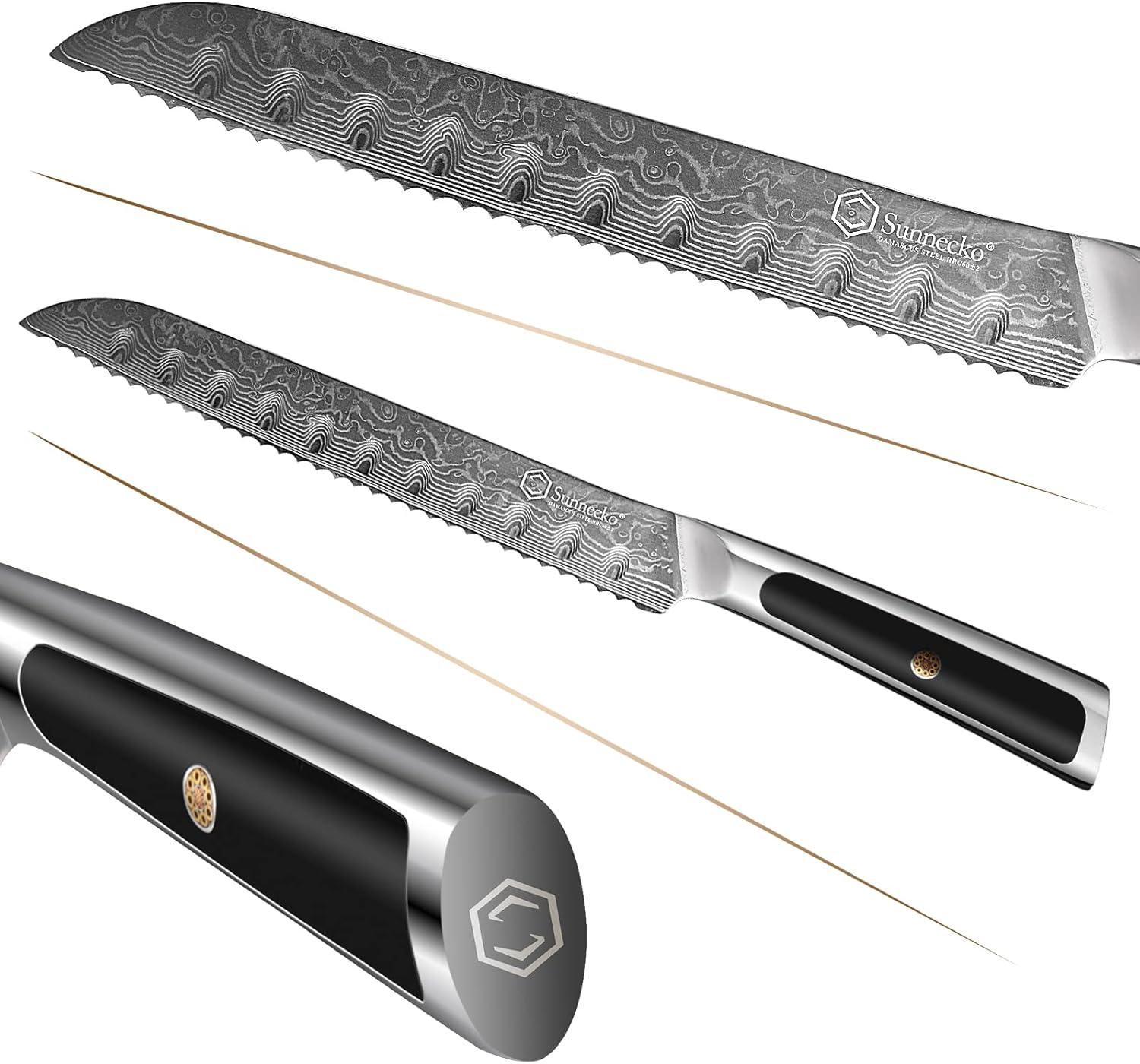 Sunnecko Bread Knife 8 inch, Serrated Bread Knife for Homemade Bread with 67-layers VG10 Damascus Steel Blade, Japanese Bread Knife with Solid Handle Bread Cutting Knife Bread Knives Cake Knife