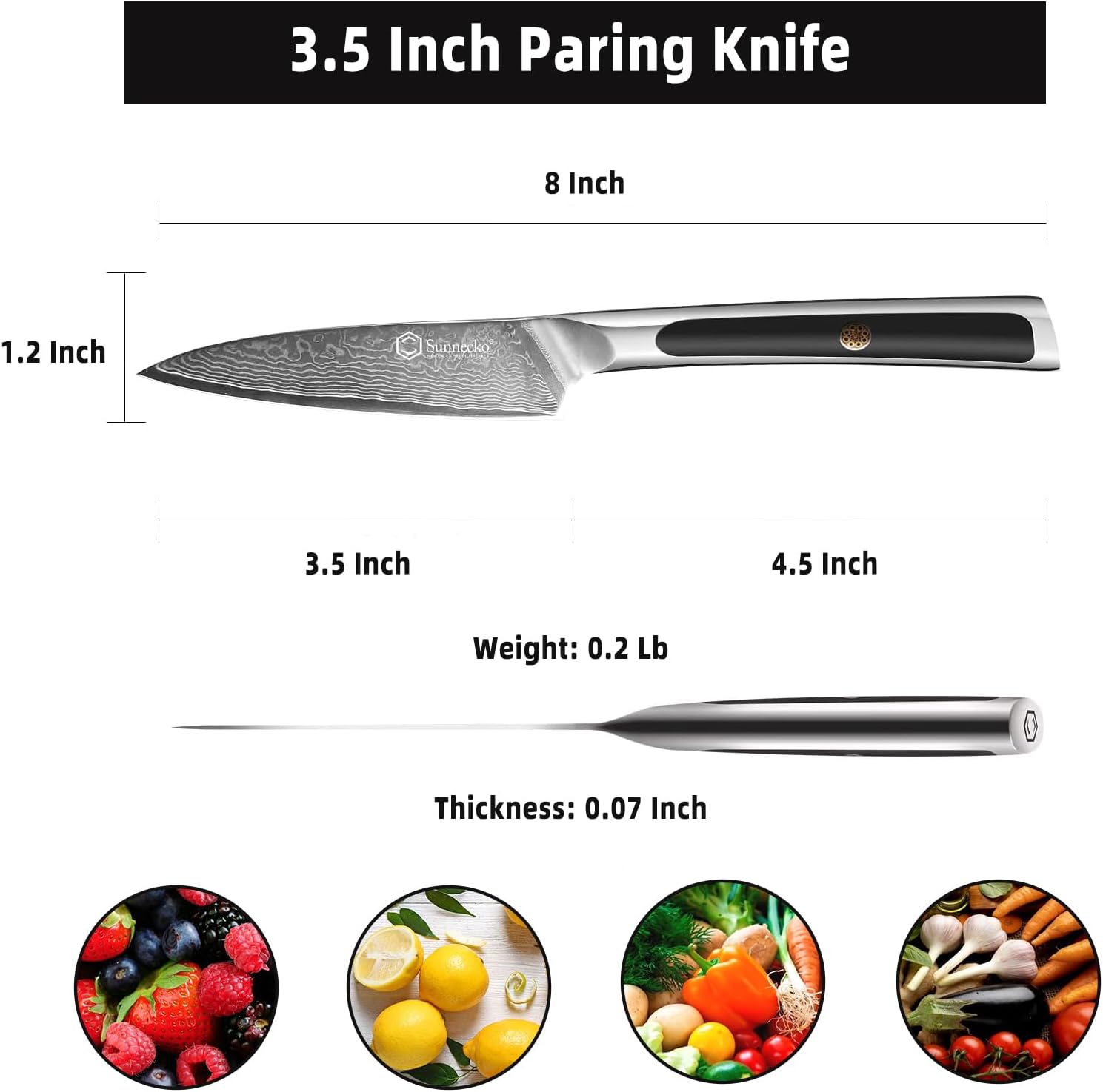 Sunnecko Paring Knife 3.5 Inch, Fruit Knife with 67-layers Damascus Steel VG-10 Blade Small Knife, Peeling Knife with Inlaid Handle Small Kitchen Knife Perfect for Cutting Fruit Vegetables Petty Knife