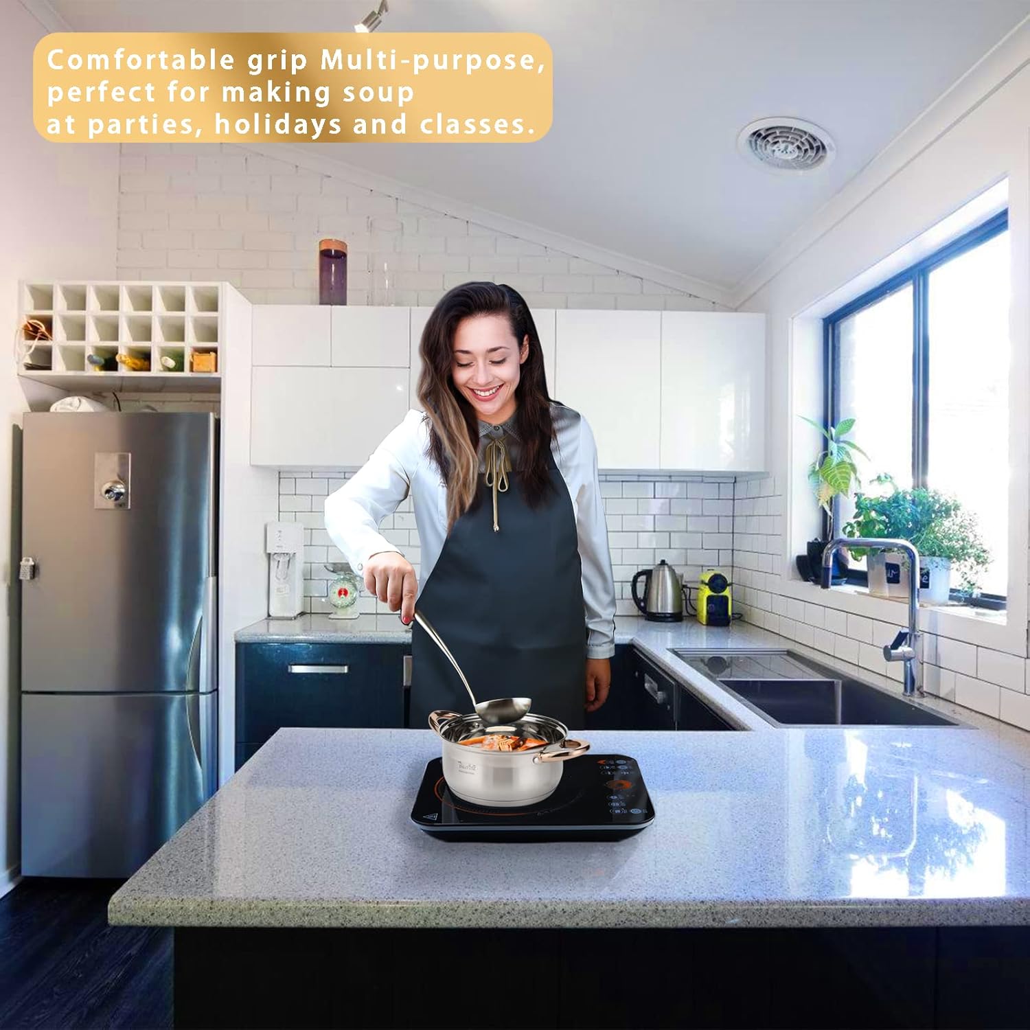 Kitchen Utensils,Contains Soup ladle,Spaghetti Claw,Wok Turner Shovel,Slotted Turner,Colander,Premium Stainless Steel,No rust,Dishwasher Safe (E.Soup Ladle)