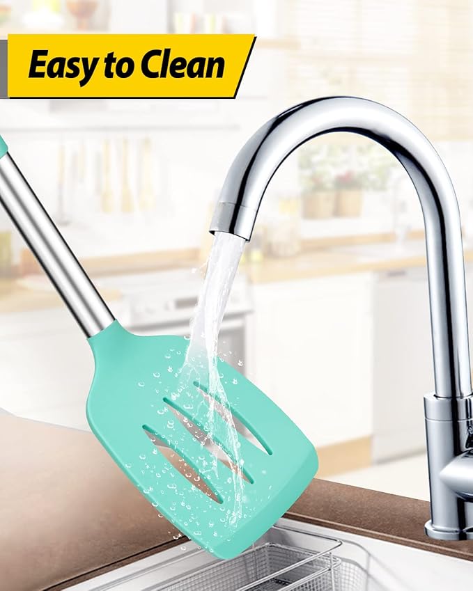 • Widely Used : Thin and flexible edge of the silicone turner is ideal for flipping,frying and turning food; Large capacity design of cooking spoon, used to hold food more convenient; Slotted Spoon can quickly drain the water