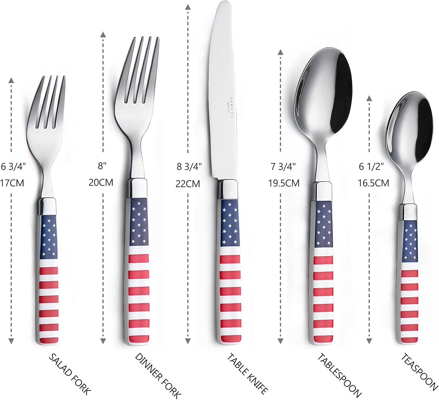 ANNOVA Silverware Set Stainless Steel Colorful Tableware Kitchen Flatware Set Utensils, Includes Dinner Knives, Forks, Spoons, Salad Forks & Dessert Spoons (US Flag, 20 Pieces)