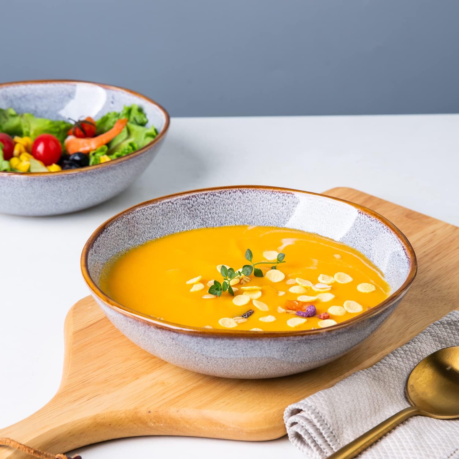 • WHAT'S IN THE BOX: This set comprises 12 carefully packed pieces, including 4 10.5-inch dinner plates, 4 8.5-inch appetizer/snack/salad plates, and 4 24 oz soup/cereal bowls.