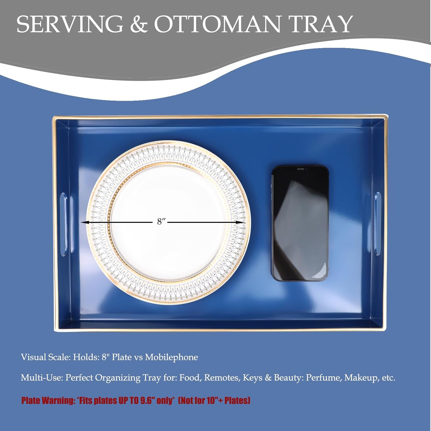 Spsyrine Blue Decorative Serving Tray with Handles, Elegant Plastic Coffee Table Tray for Ottoman, Living Room, Home Decor 15.6" X 10.2"