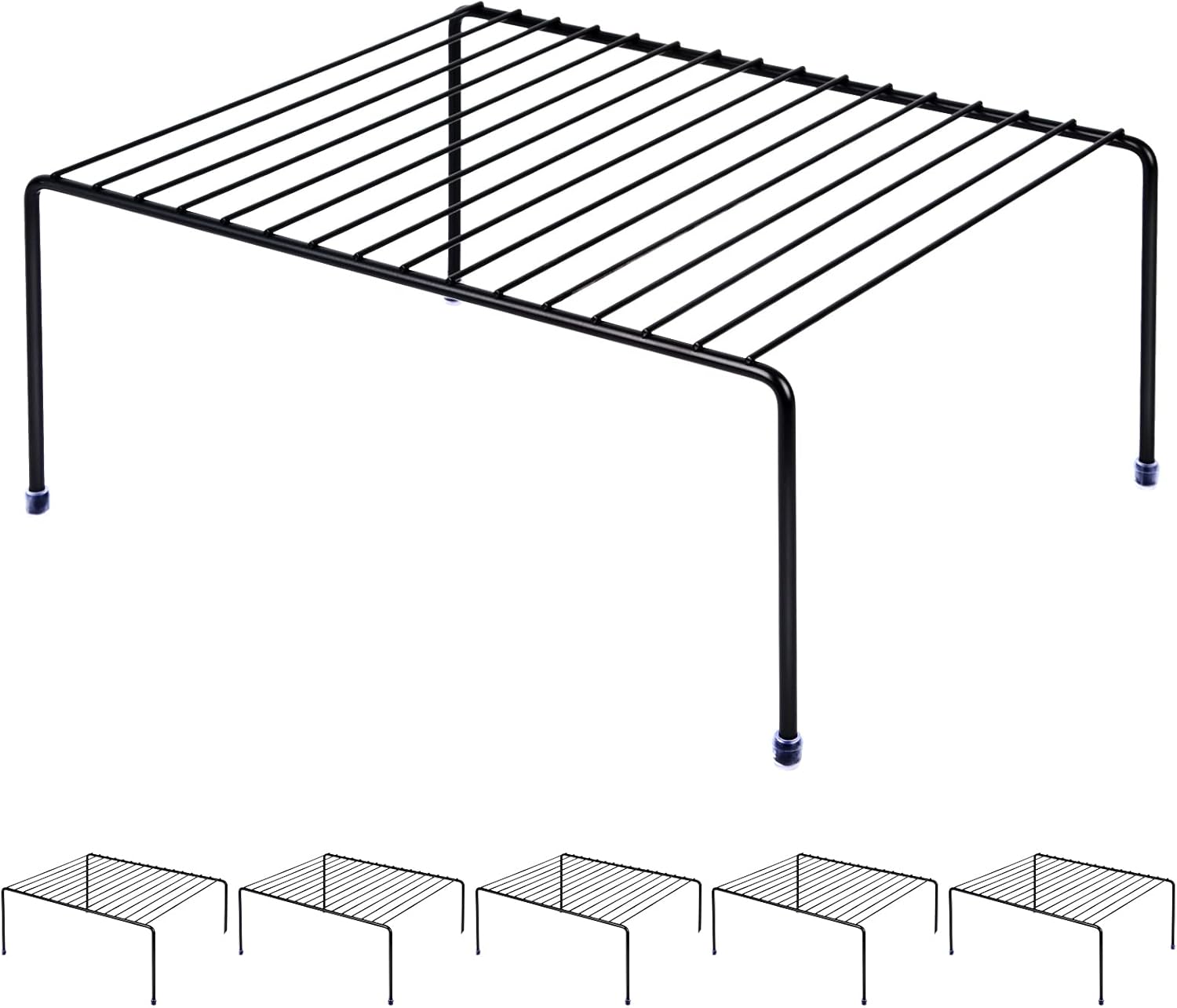 Kitchen Cabinet Storage Shelf Rack/Plastic Feet - (13.1 x 10.2 Inch) - Steel Metal - Rust Resistant Finish - Cups, Dishes, Cabinet & Pantry Organization (6, Black)