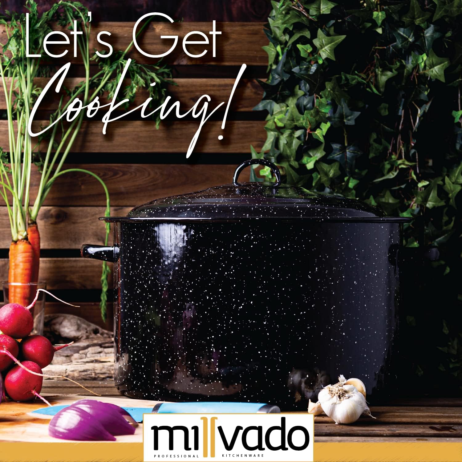 • SUITABLE FOR OUTDOOR USE: This large enamel boiling pot works great on outdoor stoves, camp stoves, grills, and open fires. It's lightweight and easy to carry - perfect for camping! Be sure to bring along a potholder, too, as the handles do get hot.
