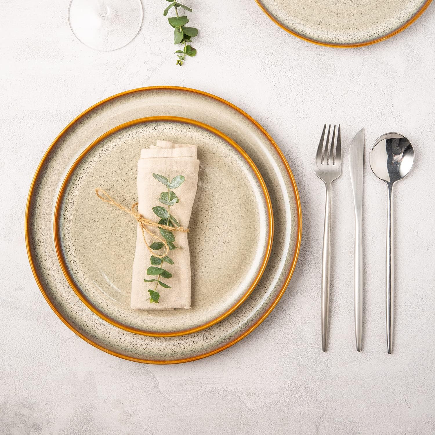 • 【LEAD FREE EAT SAFTY】Our plates is made of druable material and features an all-natural glaze that is lead-free, cadmium-free. The set is fired at a high temperature of 2340℉ for 17 hours to ensure its durability and safety. With this dinnerware set, you'll never have to worry about any health problems.