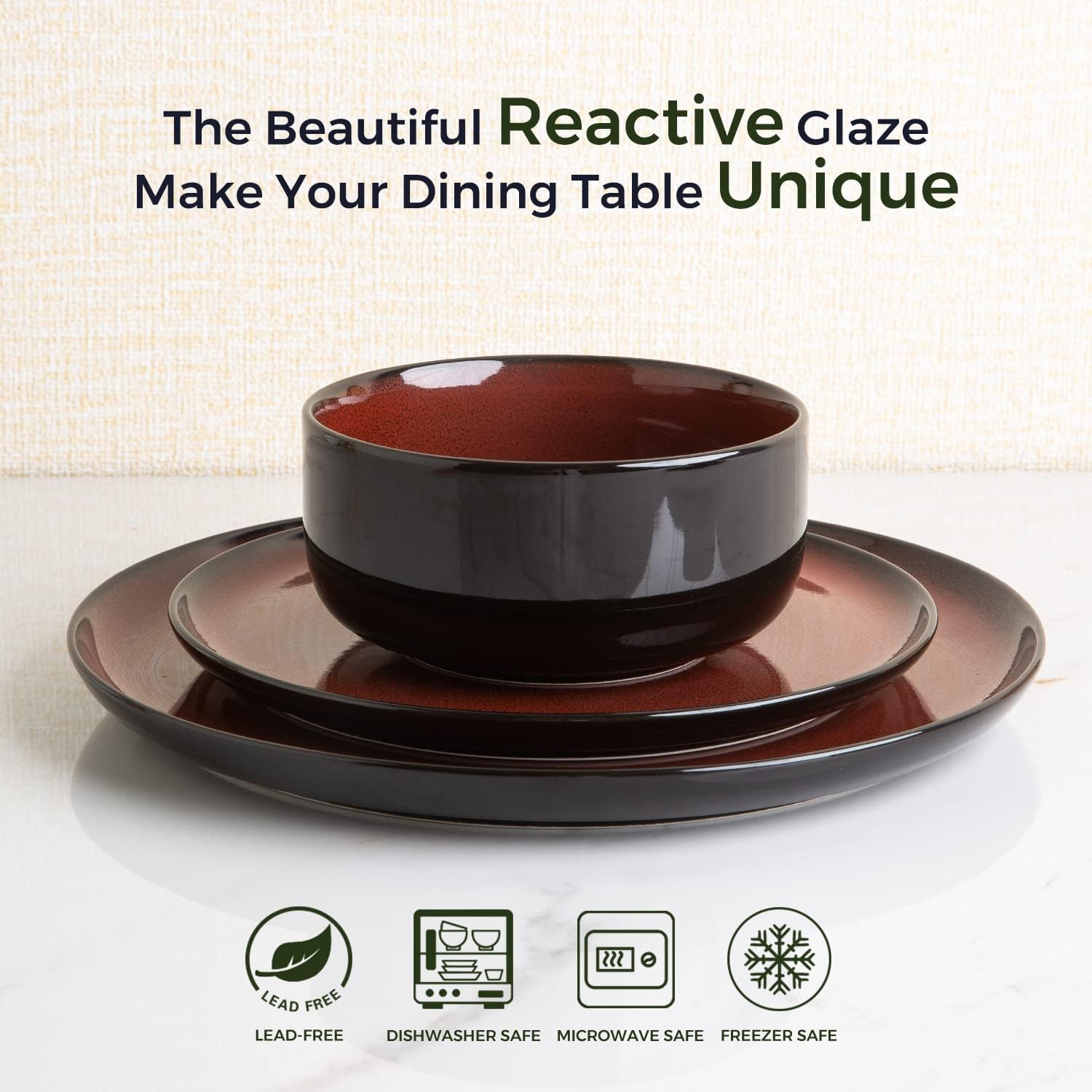 • 【ELEGANT AND STYLISH DESIGN】 This series leads the dining trend with its expressive colors and finishes. With its vibrant color palette and captivating finishes, it creates an alluring ambiance that exudes warmth. The eye-catching reactive glazes and rich, vivid hues not only soothe the senses but also elevate your dining experience. The generously-sized plates provide ample space for displaying your delectable creations, while their deep bottoms prevent any sauce from spilling over.