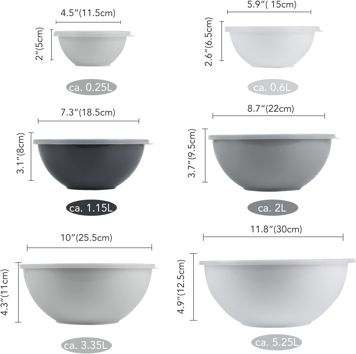BoxedHome BPA Free Plastic Round Mixing Bowl with Lids, 12 Pack Nesting Bowls with Lids Set, Microwave and Dishwasher Safe Prep & Serving Bowls Great for Mixing, Baking, Serving (White, 12pcs)