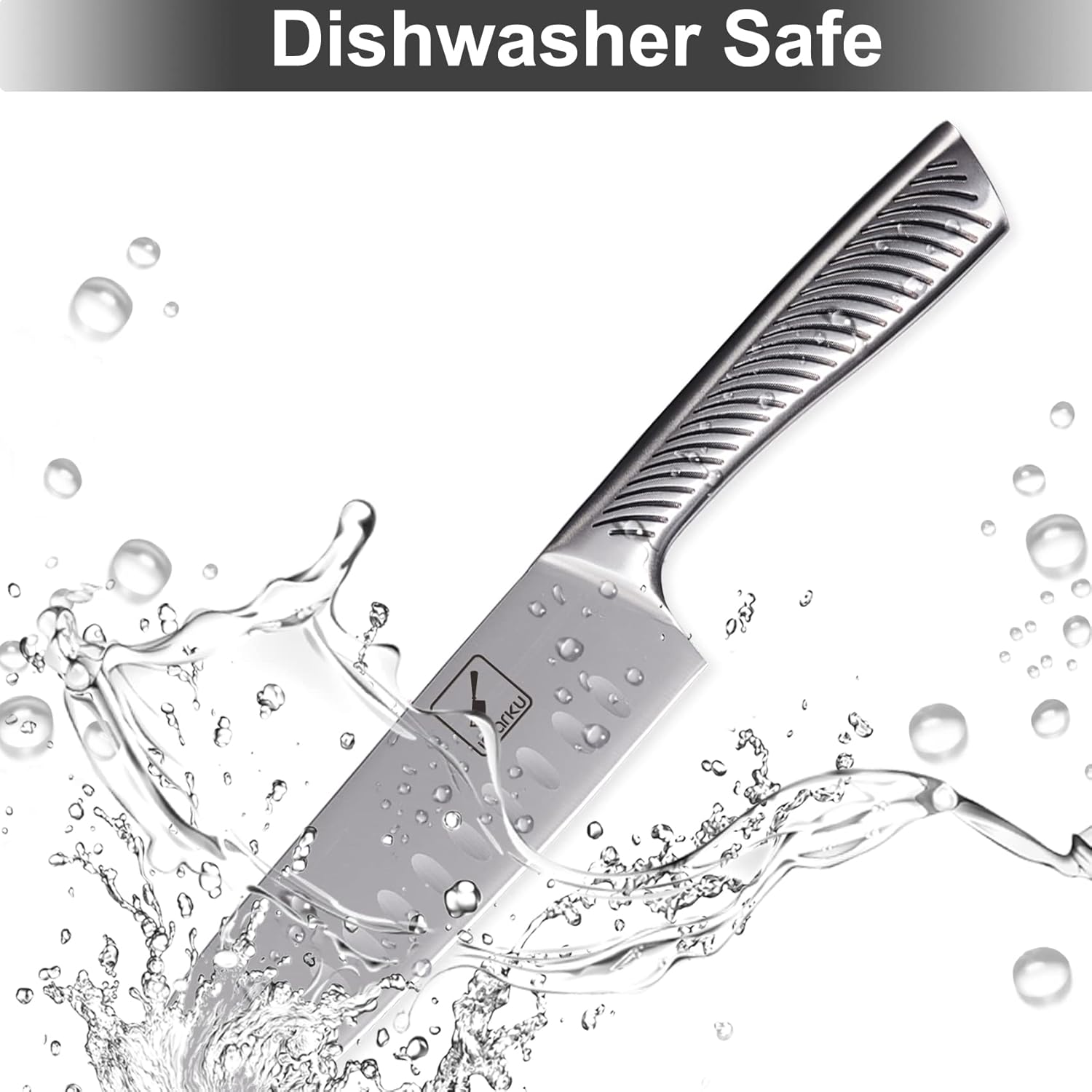 • High-quality Kitchen Knife Set: Each knife blade in this knife block set is made of premium imported steel from Japan, safe for dishwasher (will update the neutral manual). All the knives are precisely processed heat treatment ensuring every blade maintains its strength and function. Rockwell hardness: 56 ± 2 HRC