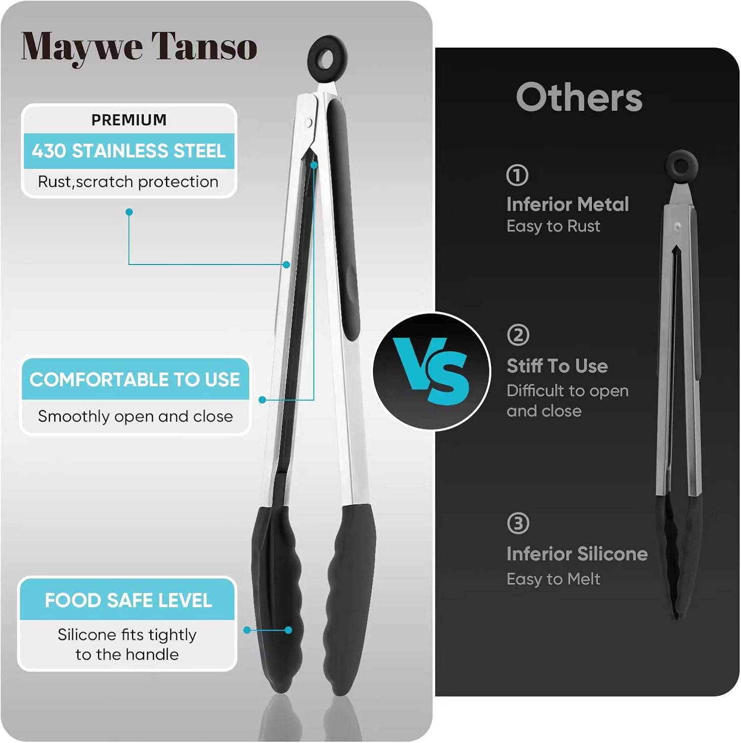 • WORRY-FREE SHOPPING: Maywe Tanso Store have been improving kitchenware quality requirements and more user-friendly functions,providing customers with the highest quality kitchen utensils.If you have any questions about the silicone tong,please don't hesitate to contact us,we will provide you with a satisfactory solution!