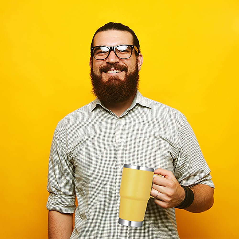 • Colored Powder Coated Tumbler: The stainless steel coffee mug is crafted with stylish color powder coating, gives you multiple color options. It's cool to touch when filling with hot water and also sweat proof with cold water, always keep your hands comfortable while holding the coffee travel mug with handle