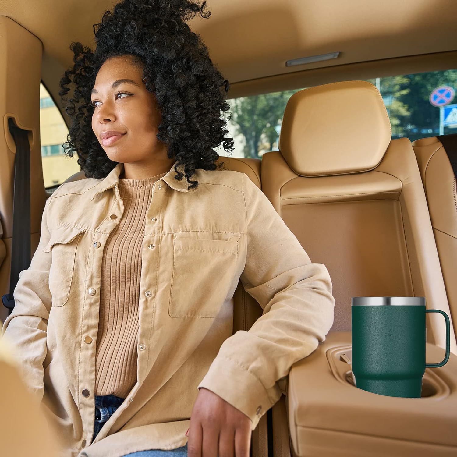 • Cupholder Friendly: The travel coffee tumbler 20oz is designed with a tapered shape which fits most car cup holders, equipped with a sturdy handle that allows easy carrying. Diameter 3.38" large cup mouth makes it easier for you to clean the stainless steel mug
