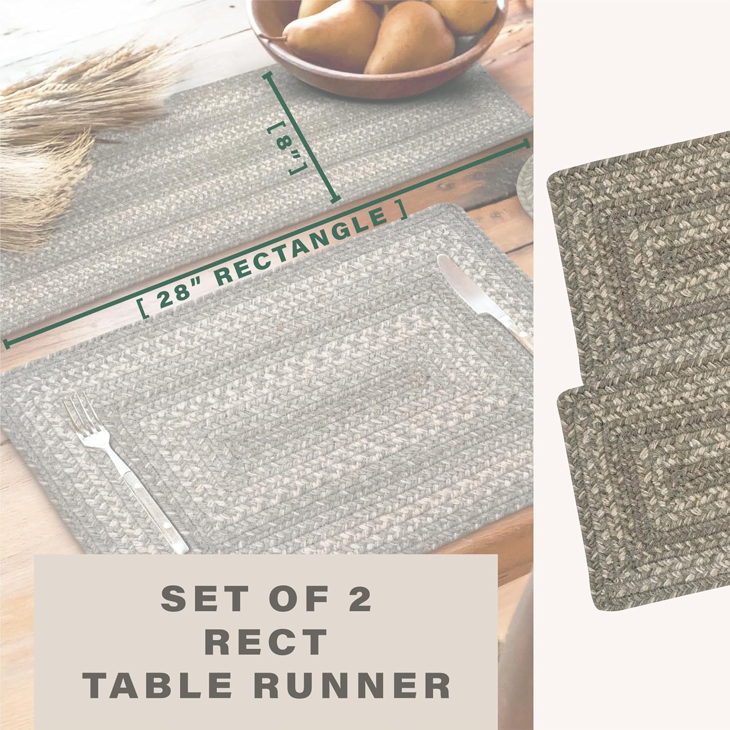 Homespice Grey Cloud Jute Braided Small Table Runners, Farmhouse Country Decor, Set of 2, Grey Rectangle 8x28 - Rich Colors, Easy to Clean, Durable and Protects Furniture