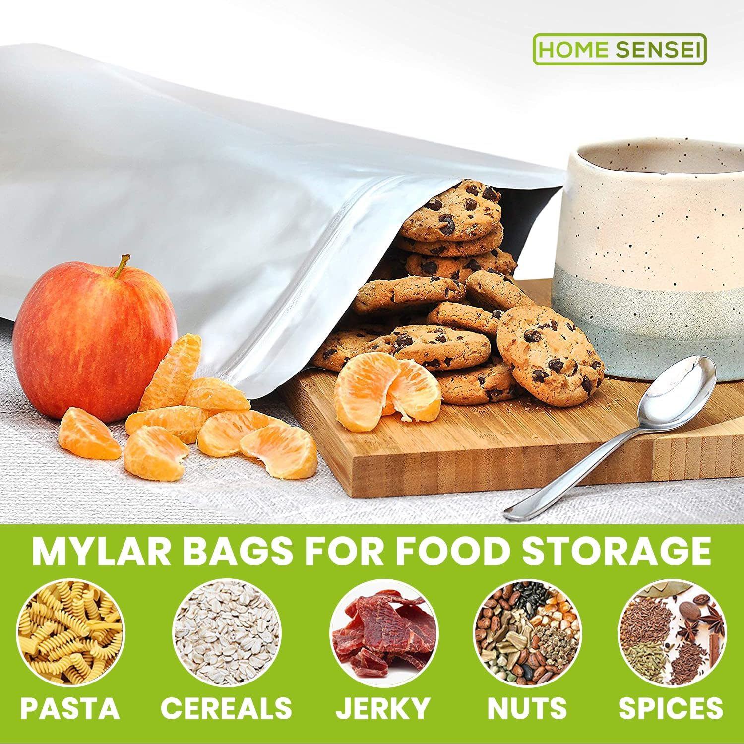 • [EASY TO FILL] Our Mylar Bags for food storage are designed with a gusset to stand up right, which makes it easy to fill and organize! The standing pouch also simplifies the storage saving space in cupboards. Freezer safe 0°F-183°F.