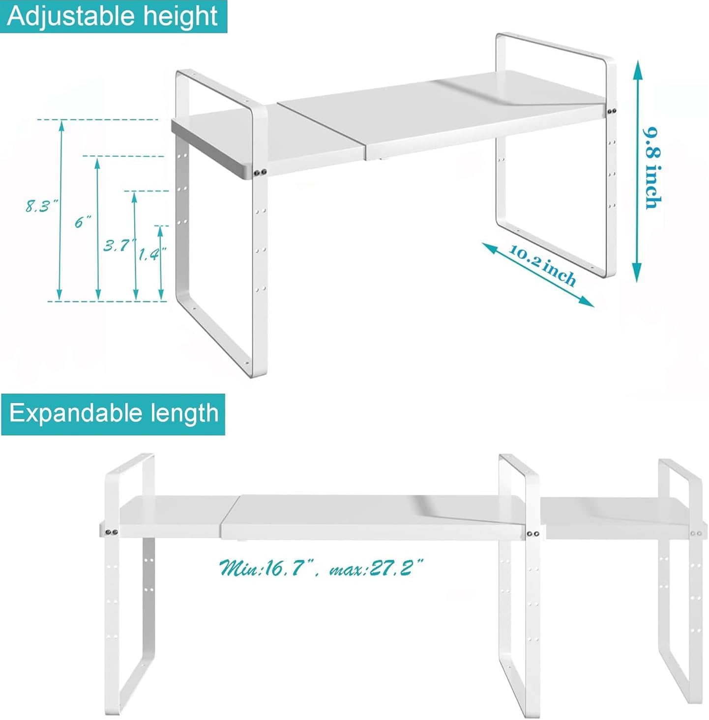 • 【Expandable and Stackable Design】 - The length and height of this shelf can be adjusted to your desire. It can vary from 16.5 inches to 27.5 inches in length depending on how you want to arrange your space.