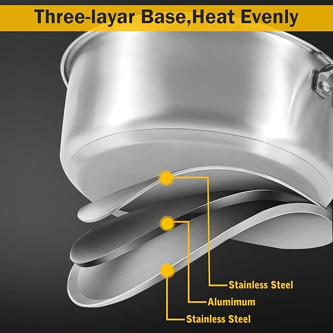 • 【High-Quality Materials】 Drip-free pouring tri-ply construction.The first and third layer is stainless steel for sturdy nonstick pots features. The aluminum in between conducts consistent even heat distribution