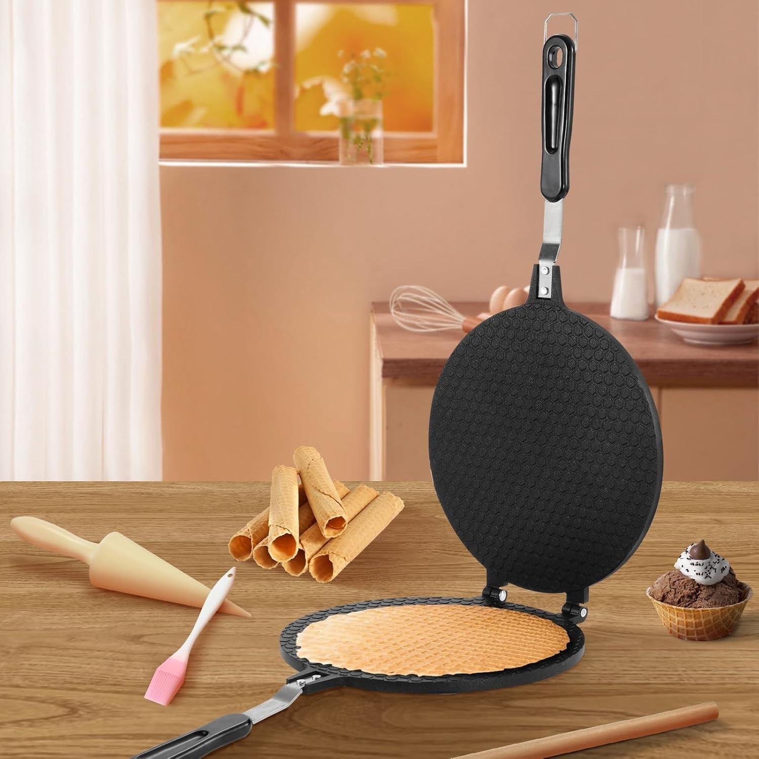 • Multifunctional Ice Cream Cone Mold - You can use our waffle cone maker to make ice cream crust, omelet cones, crepe, waffle bowls, egg rolls, waffle cones or tacos. Our ice cream cone baking pan is a nice choice to make breakfast, snacks for your kids, friends or family.