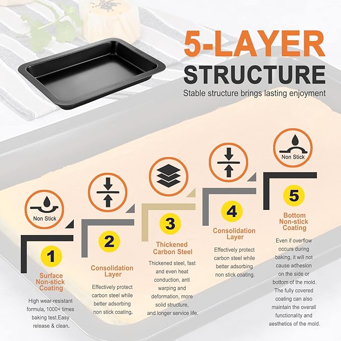 • Easy to Clean - Hand wash recommended after washing, dry the baking pan in the oven, make sure the corners retain water is dried completely in the oven.