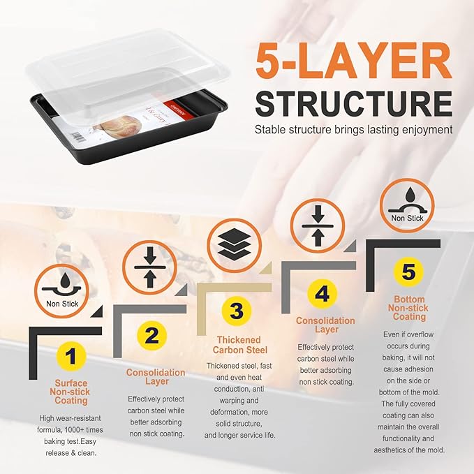 • Easy to Clean - Hand wash recommended after washing, dry the baking pan in the oven, make sure the corners retain water is dried completely in the oven.