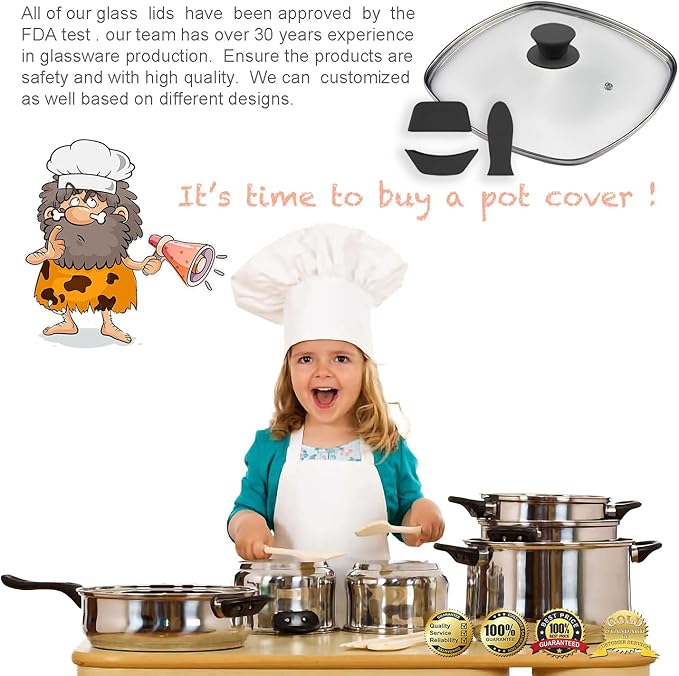 • [What's in the box] 1pack 10.5'' square glass lid , 1 handle, 3 cast iron handle covers. We provide 100% after-sale guarantee, any doubt just feel free to contact us via Amazon, we will offer the best service and reply you within 24 hours.
