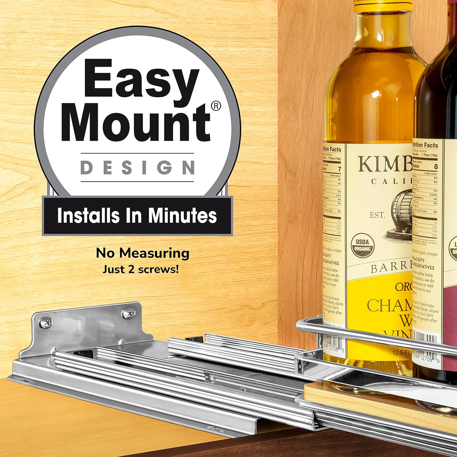 • SETUP IS A BREEZE! – no struggling within limited space trying to place four awkward and difficult to reach screws inside your upper cabinets or into pantry shelves – our exclusive EASY MOUNT cabinet friendly drawer design installs with just two screws in the easily accessible back of your narrow cabinets – in minutes with no measuring!