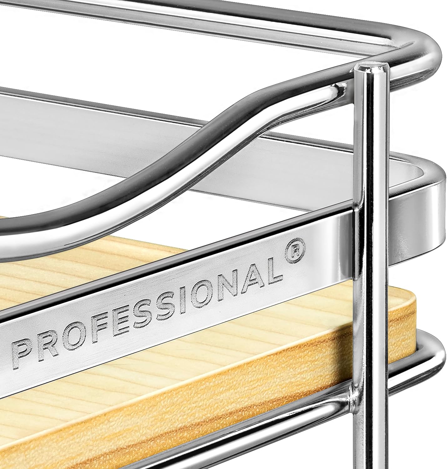 LYNK PROFESSIONAL® Élite™ Pull Out Spice Rack Organizer for Inside Kitchen Cabinets - 8-1/4 inch Wide - Slide Out Drawer – Wood/Chrome Sliding Spice Cabinet Organization Shelf Racks - 2 Tier