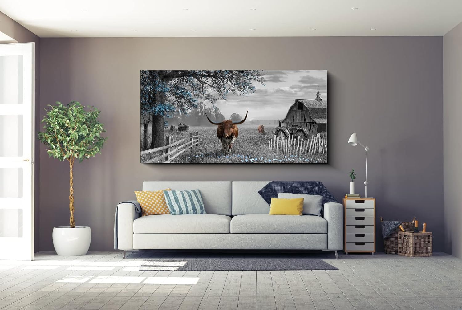 • 🐂Great Gift Wall Wall: Western decor cow picture.Due to different brand of monitors, actual wall art colors may be slightly different from the product image.