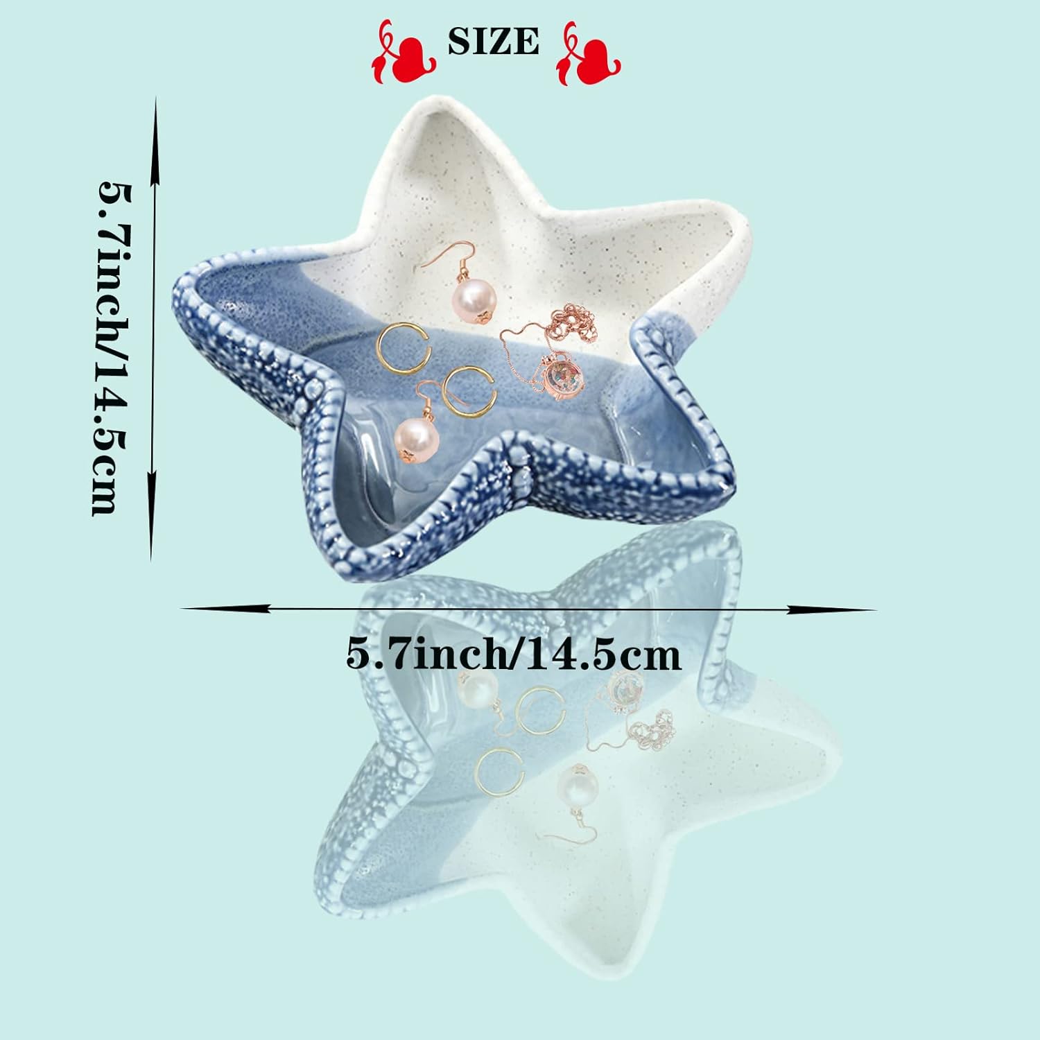 Starfish Jewelry Dish Tray, Ceramic Ring Holder for Jewelry, Trinket Tray Candy Dishes, Jewelry Tray Jewelry Plate Small Key Bowl for Entryway Table Birthday Home Party Decor (D STYLE)