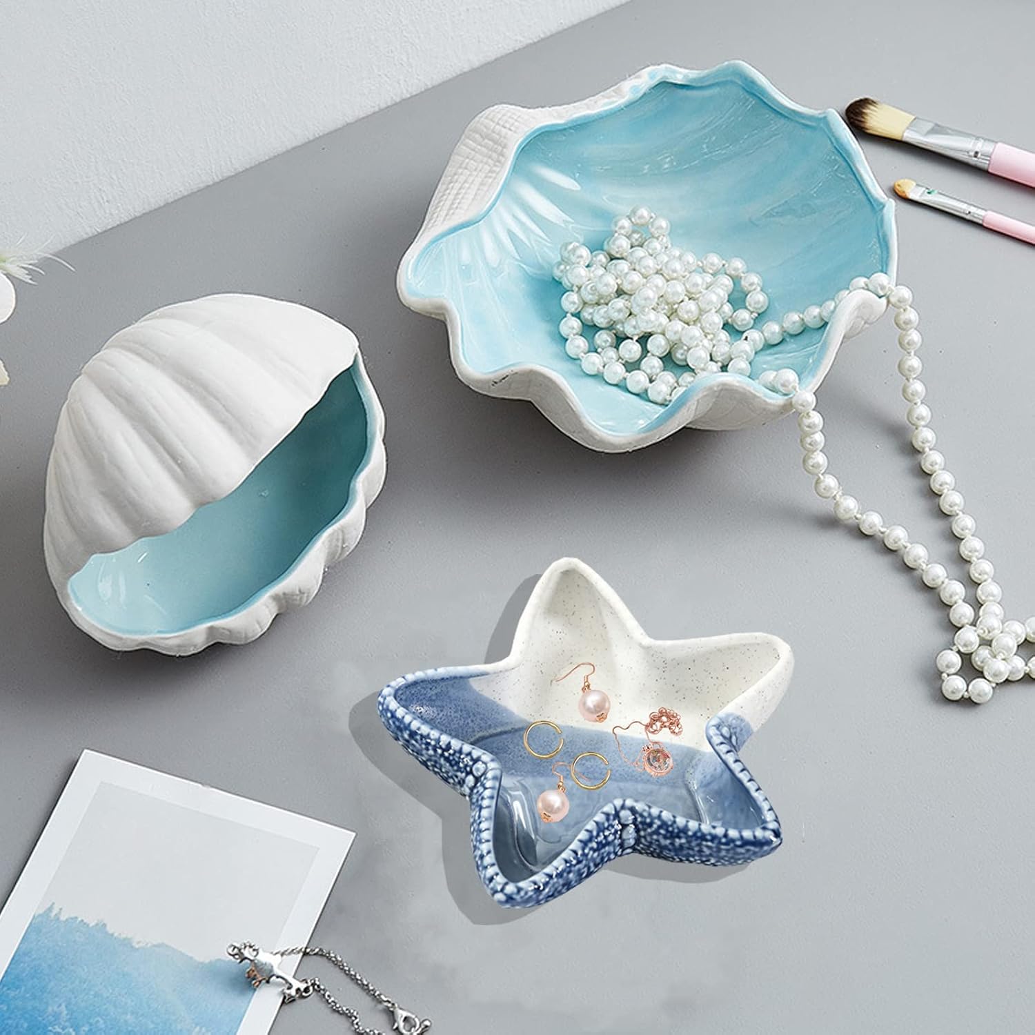 • MATERIAL : These cute jewelry dish are made from premium quality ceramic, which is strong and durable. This beach room decor - earring dish tray will last for a long time usage, store your special trinkets
