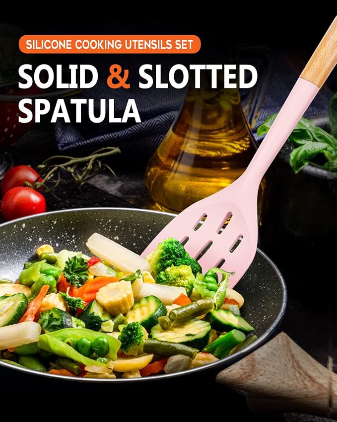 • Ergonomic & User Friendly: Enjoy cooking without discomfort! Each kitchen turner features an ergonomic wooden handle for a secure grip, and the seamless design makes cleanup a breeze